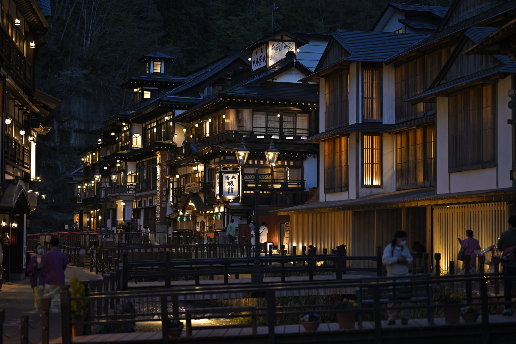 ◇ 百年前の佇まい~黄昏時刻に漂うロマン 清少納言は「 夏は夜 」と、枕草子の中で言っています。 銀山温泉についても、「 銀山温泉は夜 」と言うことができると思います。 そして夕闇の温泉宿の街を歩いてみたら、「 小雨の銀山温泉 」、「 雪降りの銀山温泉 」、「 朝霧の銀山温泉 」・・・。 この温泉宿の街の色々な表情を見てみたいと思いました。