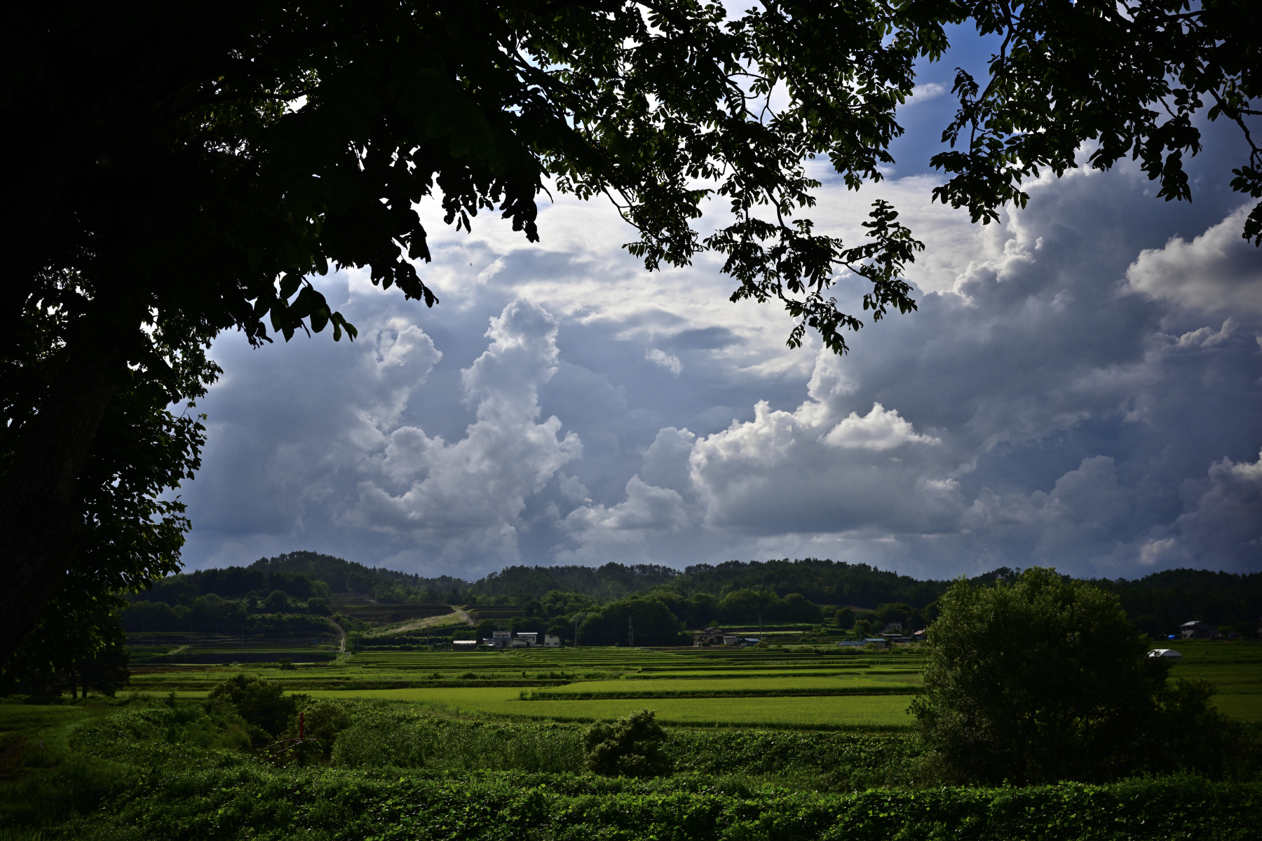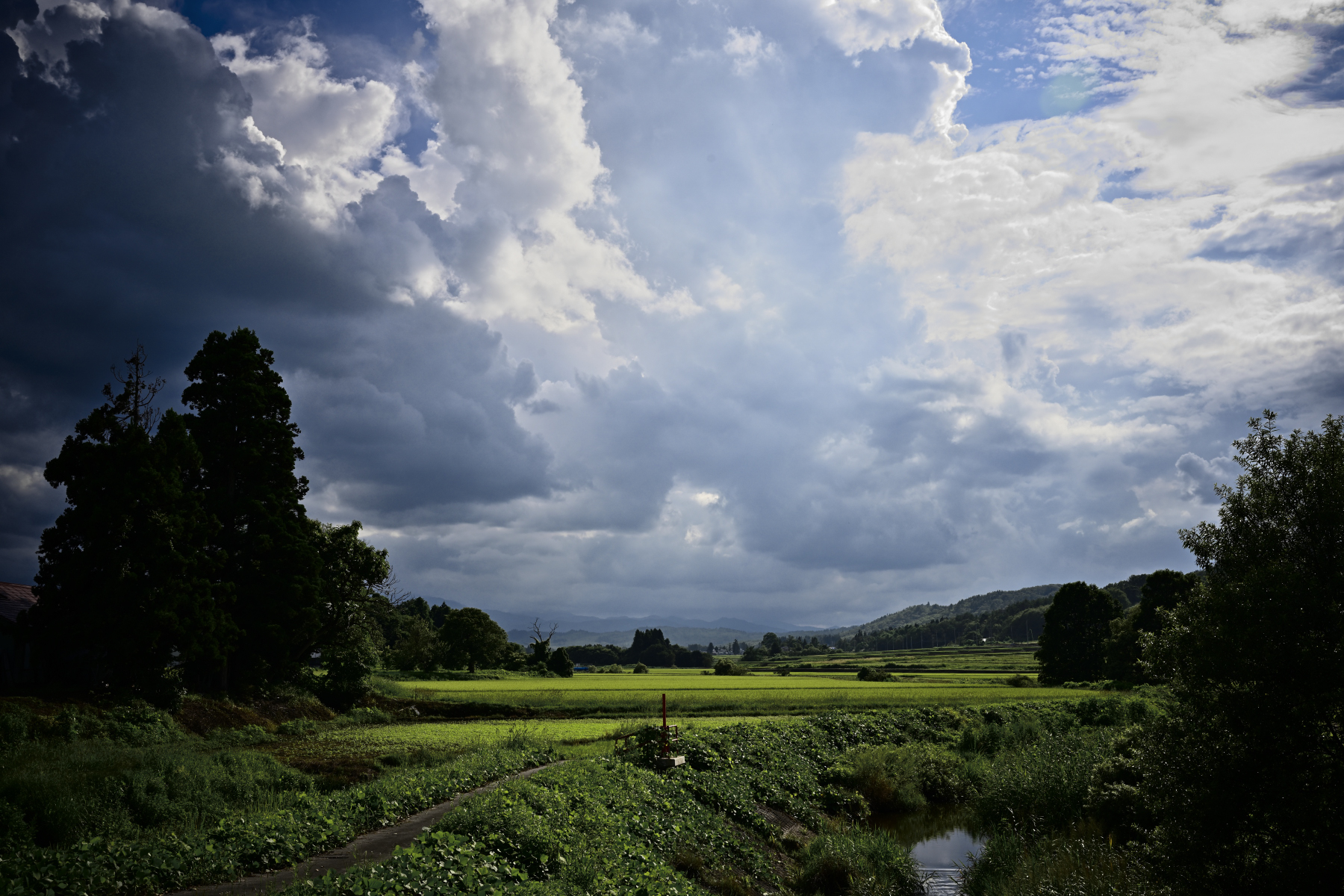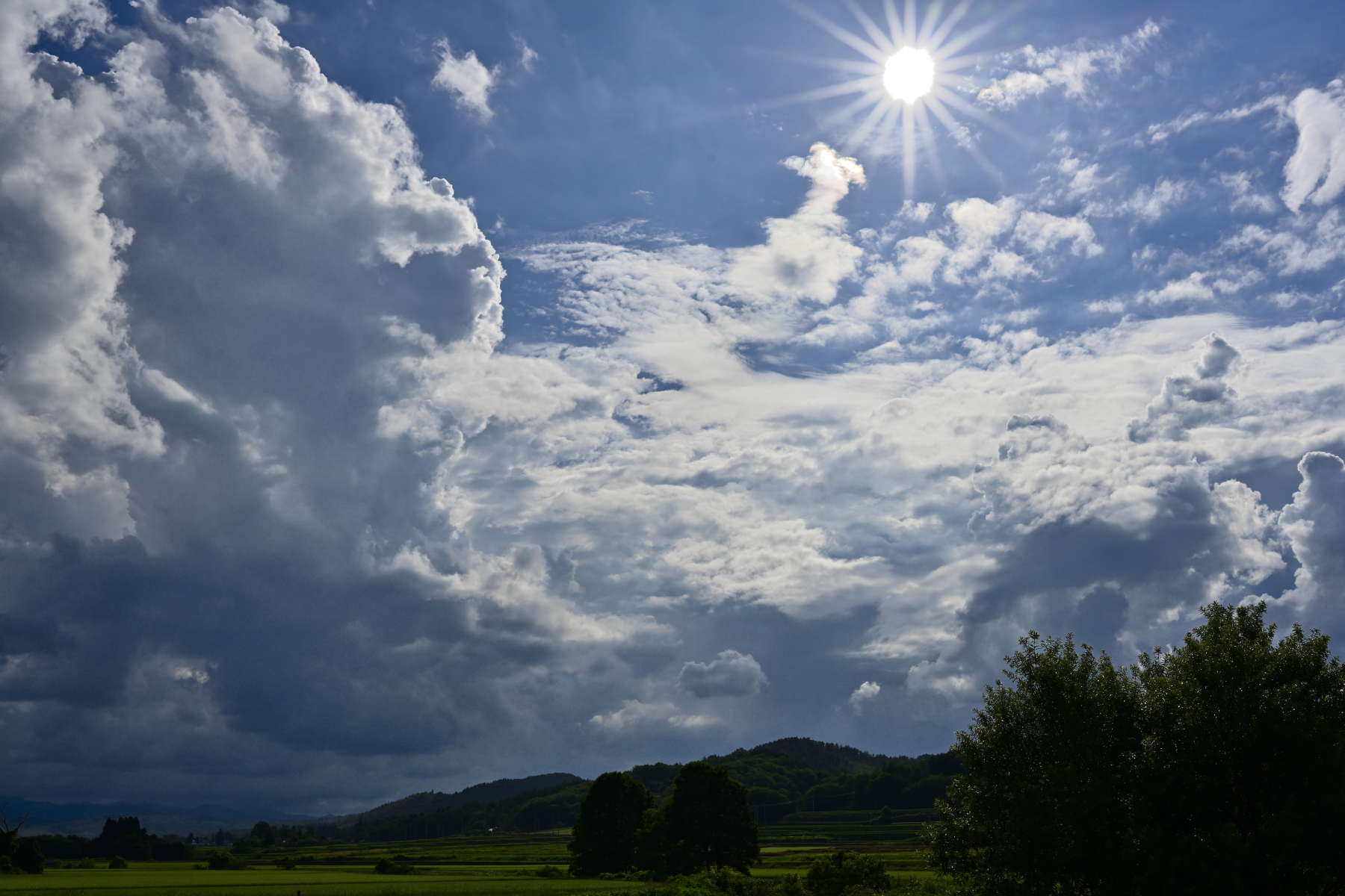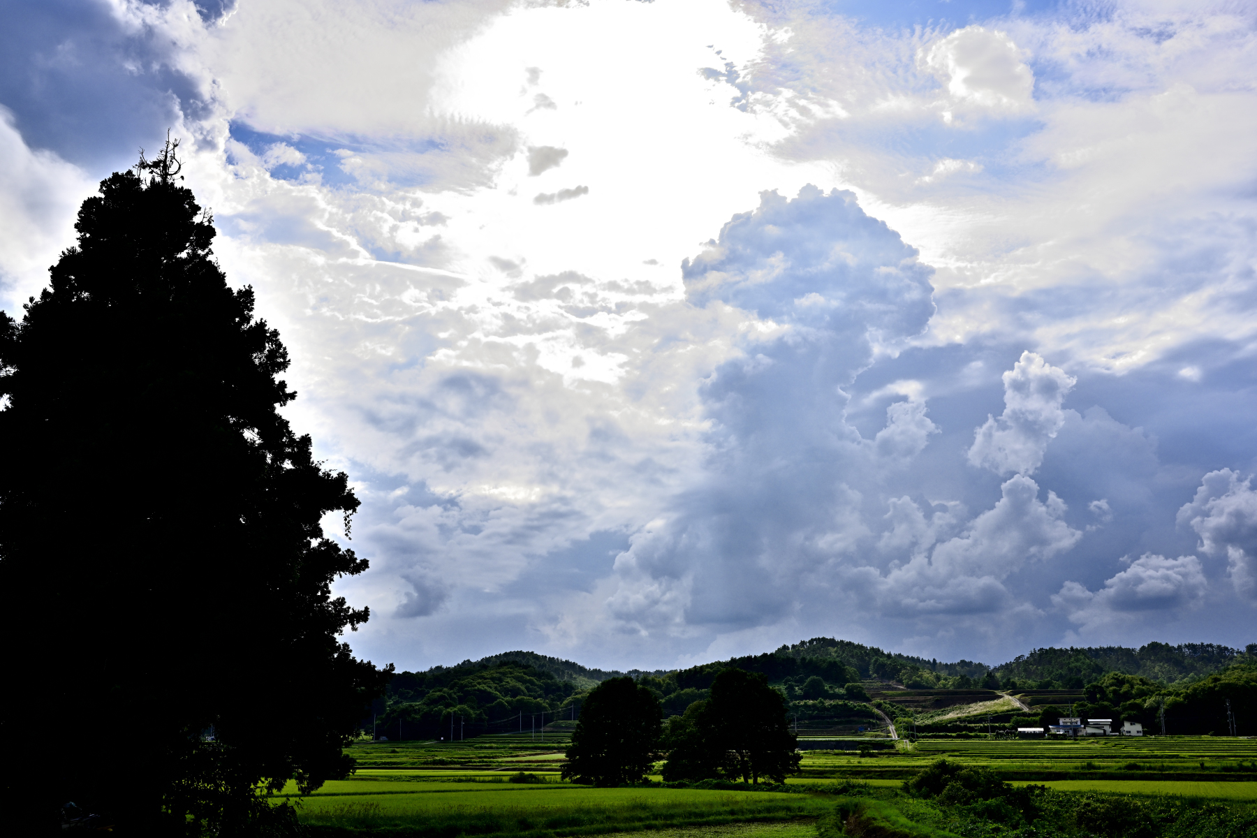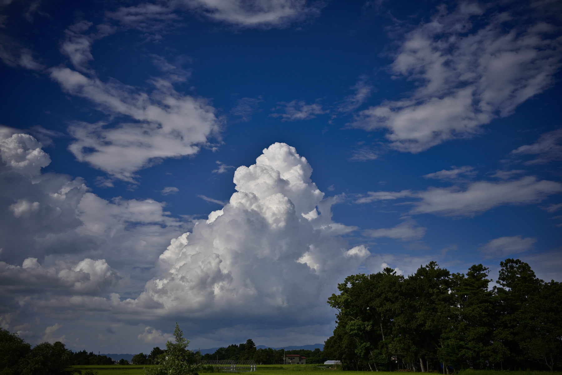 でも、空と雲、目の前に田んぼが広がって、所々に木立があって・・・。
